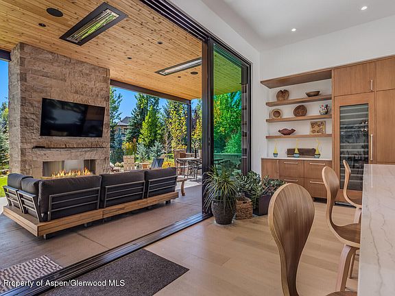 Triple glass doors lead you to an enchanting patio living area complete with built-in ceiling heaters and a cozy fireplace, perfect for year-round enjoyment -essential for the best of Colorado living! Light beams through the oversized windows, illuminating the elegant interior. Imagine evenings in your new home, surrounded by natural beauty, warmth, and thoughtful design creating an uplifting atmosphere.