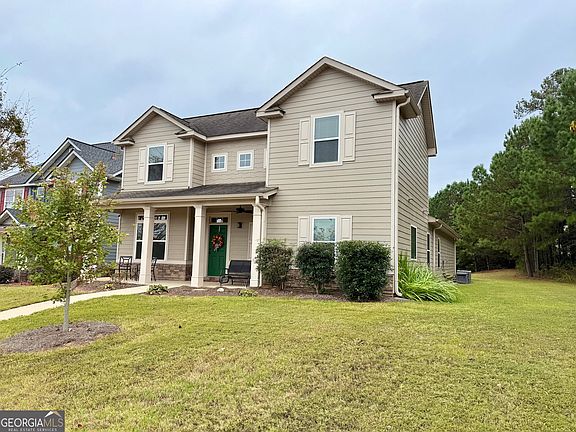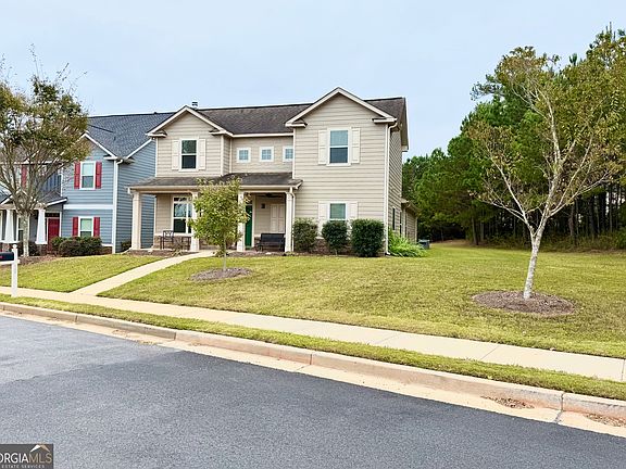 This home is an end-lot with natural space next to it, built in 2013 with a total of 2602 sq ft with 4 bedrooms 2 1/2 bathrooms and made of Hardi-plank siding and stack stone! The home has all new paint, and a water softener system. The master bedroom is on the main level! This home is super clean with beautiful archways, open floor plan, a rocking chair front porch, along with a back patio, and a privacy fenced backyard. Your guests will have plenty of room to park out front or use the alleyway behind the home to park in the extended driveway. There is a two-car attached garage. The main level of the home is open and consists of a formal sitting room/office, open kitchen with extended countertops, dining area, living room with beautiful fireplace, guest bathroom, drop zone for jackets and shoes, and laundry room with utility sink. Under the staircase is a cute home for your pet to hang out. The guest bathroom has a wood-planked wall along with an updated vanity. The primary bathroom is very large and has its own private en-suite with double vanity, NEW walk-in shower, soaking tub, water, closet, linen closet, and extra large clothes closet. There is a coat closet and storage closet on the main level as well. The kitchen has a gas stove, plenty of cabinetry, and is open to the living room where there is space for barstools and extra seating. Upstairs, you will find three large bedrooms each with its own walk-in closet. There is a hall bathroom that also connects to one of the bedrooms. The third bedroom has a wood plank wall. This home has been very well maintained and is ready for its new owners. It is super close (walking distance) to shopping, restaurants, hotels, interstate access, and entertainment. This home is in Madison Park at Newnan Lakes subdivision and zoned for Newnan Crossing Elementary, Arnall Middle School, and East Coweta High School.