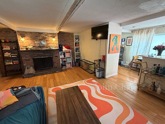 It is a unique, spacious two bedroom apartment w/ a great open layout, FIREPLACE in the MASSIVE living room, EXPOSED BRICK, two large bedrooms, NEW EAT-IN KITCHEN w/ new appliances, including a DISHWASHER, and a clean, modern bathroom.