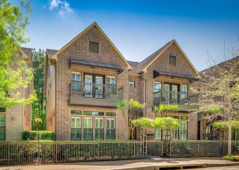 Enjoy a quick walk to many of the amenities of The Woodlands. Charming Waterway Village 3 story townhome close to shopping, restaurants, movies, CWM Pavilion, Riva Row Boat House, and IH45. Custom upgrades w/HW floors and 10' ceilings on 1st floor, crown molding and plantation shutters throughout the home. Kitchen features granite counters/backsplash, under counter lighting; Kitchen updates in 2017 include BOSCH slide-in range, microwave and dishwasher. Two NEST thermostats in home & epoxy flooring in garage. Large master suite w/balcony, coffee bar w/mini refrigerator. Master bath features marble counters & floors and double sinks. Secondary bathroom w/double sinks & separate tub/shower area. Game room, or 4th bedroom on third floor with full bathroom & closet. Newly painted walls, new carpet 2020. Two Trane AC units & hot water heaters replaced 2018. Front loading Washer/Dryer (2017), Refrig & SS AOG gas grill stay with the home. One of the best locations to live in The Woodlands!