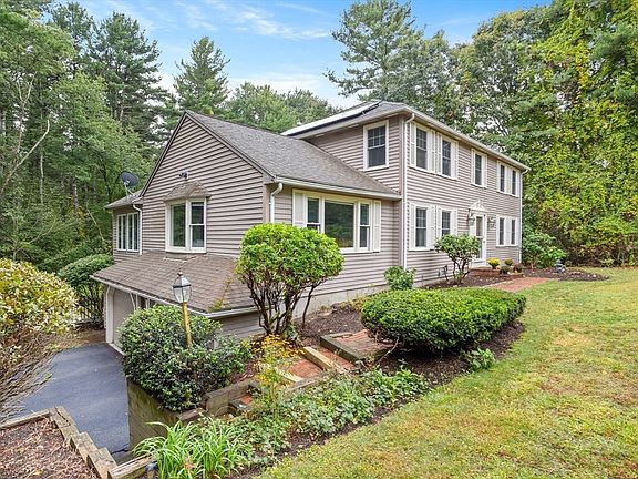 Welcome to this spacious hip-roof Colonial in the quiet cul-de-sac neighborhood of Pheasant Hill. This 4-bed, 2.5 bath home offers over 2,500 sq-ft of living area and a huge backyard abutting acres of wooded privacy. The inviting foyer is flanked by a front-to-back formal Living Room w/ fireplace and formal Dining Room which leads into eat-in kitchen w/ SS appliances, center island, & dining area w/ bay window. Great Room w/ vaulted ceiling leads into 4-season Sun room w/ French doors leading out to composite deck overlooking the backyard. Upstairs features the Primary bedroom w/ en-suite bath & walk-in closet, 3 additional bedrooms & full bath. Walk-out lower level features plenty of space & access to the 2-car garage. Outside is a backyard oasis providing plenty of space for outdoor entertainment, featuring wooded privacy at the rear of the property.