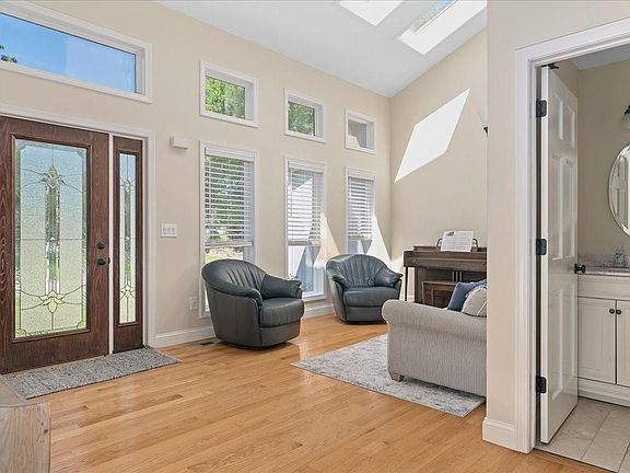 This luxurious family oasis in Rock Ridge in Westerly offers everything you need. This single-family residence emanates elegance throughout with meticulous attention to detail. A modern design and timeless charm create an appealing and awe-inspiring atmosphere. 38 Rock Ridge Road is a magnificent split-level property with four bedrooms and three and a half bathrooms. Relax in the luxurious master suite on the upper level with a private balcony and enjoy the simple joys of life like sipping coffee as the sun rises. The main level has a large living room with vaulted ceilings and a floor-to-ceiling modern fireplace with gorgeous masonry work, and four glass sliders that open to the large deck and charming backyard. The property sits on .73 acres and has over 3000 ft² for comfortable living and entertaining. The large two-car garage is connected to the residence by a laundry room/ mudroom, which leads directly into a magnificent kitchen with granite counter tops, stainless-steel appliances, and a tile backsplash that will capture you as you enter. This property has a stunning 38-foot salt water in-ground pool equipped with a solar heat cover and fence for child safety. A large basement and finished lower levels provide abundant space for a number of possibilities. Take advantage of this opportunity to call this home your own. Furniture Negotiable. 5 bedroom septic.
