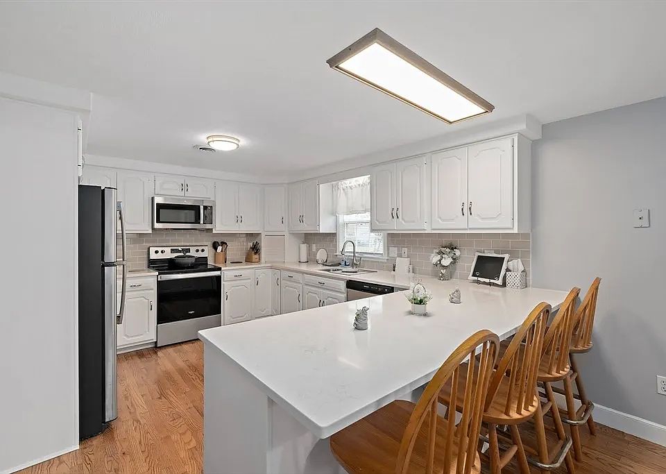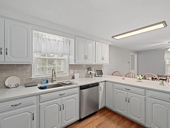 Private back deckPeninsula kitchenHardwood floorsCozy sunroomFilled with natural light