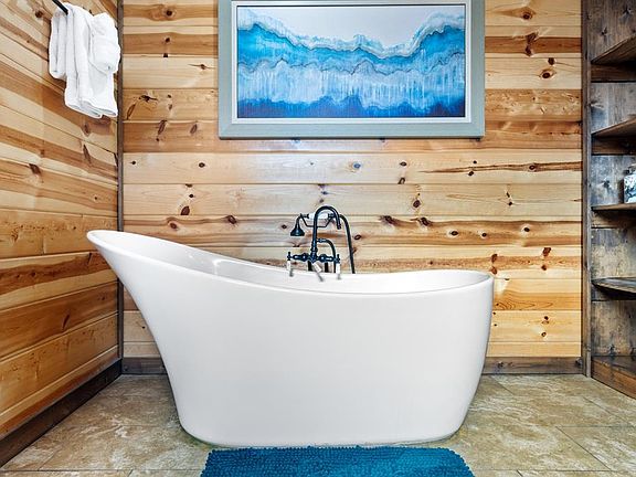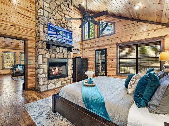 Private hot tubFire pitModern luxuryRustic charmGrand rock fireplaceKing size bedSpacious lot