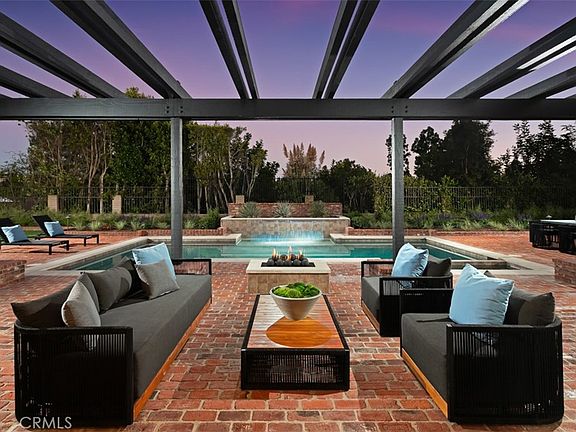 Southern California’s climate in a backyard with pool, spa, waterfall, and a built-in BBQ island.