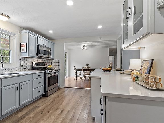 This is the home you have been waiting for... amazing South Chelmsford location in the desirable Farms 2 Neighborhood, 3/4 bedrooms, 2.5 baths and a huge secluded backyard! This beautifully maintained ranch has an updated kitchen with island seating, stainless appliances and gas range, an open concept living room with huge picture window and a dining area w/sliders that open to the patio, gazebo & gorgeous backyard. A few steps away is the laundry room & sunny and bright family room with a cathedral ceiling and full bath- making it a great flexible space for extended family, playroom or home office. The primary bedroom with half bath, 2 additional bedrooms and full bath complete the floor plan. Great commuter location with access to Route 3 & 495, conveniently located close to Russell Mill Pond and Town Forest, central air, 1 car garage, lots of storage options and so much more make this a home you don't want to miss! Back on market so quickly due to job relocation.