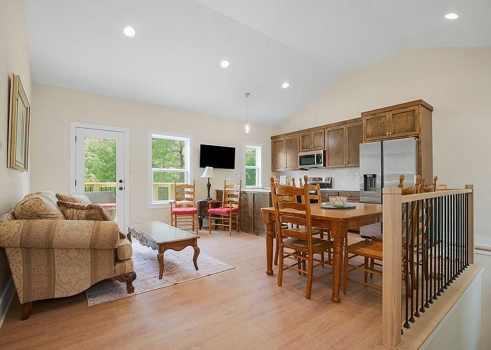 Perfect 2 bedroom, 2 bathroom cabin at Linn Valley Lakes. Whether you're looking for a weekend retreat/vacation home, a cozy place for retirement or you just wat to enjoy the beauty of nature - this has it all. Newly built, with an excellent maximization of space. The main floor features a bedroom, bathroom, full and efficiently designed kitchen and a combination living/dining area. Step out on the 10 x 12 deck and enjoy the breath taking views. Lower level features a den/study, second bedroom and bathroom as well as laundry facilities. Walk out from from this level and enjoy a concrete patio perfect for entertaining. This unit would also be an excellent investment opportunity. With the World Cup in Kansas City next year, this could be a highly desirable location. Enjoy all the amenities of this gated community, including boating, swimming, golfing, tennis, walking trails, disk golf, mini golf, and fishing. Additional details can be found at Linnvalleylakes.com.