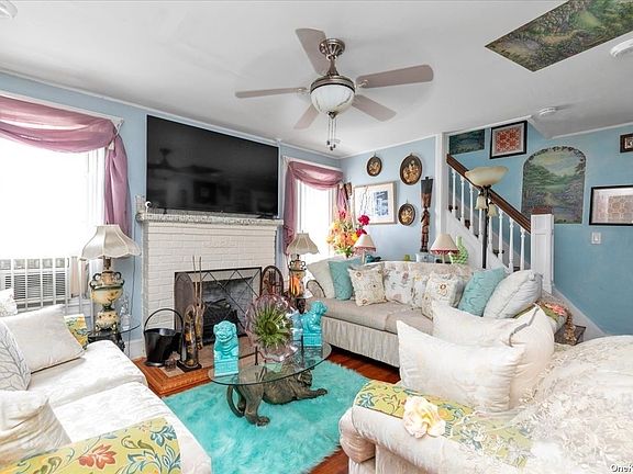 Freeport colonial. 4 bedrooms 1.5 bathrooms with ample living space. Front ceramic tiled sunroom 23'x7', pine floors in living room with woodburning fireplace 12'x17', formal dining room 13'x12', eat in kitchen 11'x9', half bath. 2nd floor-pine floors, primary king bedroom 12'x10', 3 additional bedrooms 11'x10', 11'x10', 9'x9', full bath. 3rd floor-walk up attic office/study 23'x11', basement-rec room, utilities, laundry, storage. New front doors. Oil/steam heat, gas stove & hot water. 2 car detached garage. 3 blocks from Columbus Ave School. 2 blocks from Bishop Frank White Park. Approximately 1/2 mile to Freeport LIRR. 2006 last tax grievance.