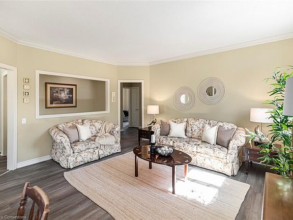 Welcome to 38 Silverbirch Blvd, located in the highly desirable community "The Villages of Glancaster" This thoughtfully designed 2-bedroom, 2-bathroom bungalow offers the ideal combination of comfort and low-maintenance living, with plenty of space for both relaxation and entertaining. The spacious living and dining area features newer luxury vinyl flooring, while the cozy main-floor sitting room boasts vaulted ceilings, a gas fireplace, and access to the backyard. The eat-in kitchen is beautifully updated with white cabinetry, a built-in microwave, oven, and cooktop, making meal preparation a breeze. The master suite offers a peaceful retreat with a 3-piece ensuite bathroom, and a second 4-piece bathroom with a jetted tub adds extra comfort and convenience. Main-floor laundry with a stackable washer and dryer adds ease to daily living. Outside, you'll find a generous deck with an auto-awning, perfect for enjoying the outdoors and relaxing or socializing with neighbors. As part of this thoughtfully planned condo community, you’ll enjoy a wide range of amenities, including a clubhouse with social events, a pool, tennis courts, and more. This home offers the perfect blend of comfort, convenience, and an active lifestyle.
