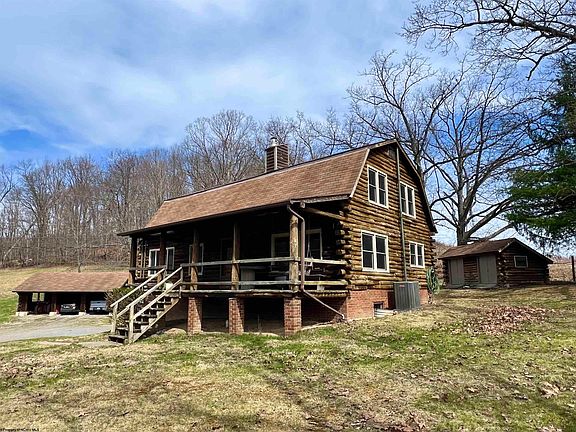 There is a story within this REAL LOG HOME on approximately 24 acres with a 34'x48' post and beam barn plus three additional out buildings that is only revealed when you stroll the property and savor the craftsmanship. Only 5.6 miles from the Star City Bridge it is a dream come true for the modern day homesteader. Having been used for raising cattle, a horse, chickens, and at one time a university funded sheep and goat grazing project. Small pond for fishing or ice skating is a delight. Even the outbuildings are made of log: 22'x32' log garage with a salt box roof; 10'x16' log shed with a salt box roof; and cutest of all is the 6'x6' log play house with a gable roof, porch, and electric. Moveable chicken house with a 10'x20' covered pen. Includes automatic feeder, waterer with heat tape, light-operated entry door, and outside egg collection. Every detail was thought of and carefully implemented. A whole house generator and three sources of heat: a high efficiency gas furnace (put in in recent years in addition to central a/c) and auxiliary heat sources should you choose from electric baseboards and the wood stove (which at one time was the sole source of heat) mean that you will never be cold despite the weather. Abundant wild life as well as a developing Pawpaw orchard. There is a gravel road with access to the cleared power line area providing additional access to the top of the hill as well as to the developed spring with large concrete tank for livestock. This was where the university project used to be. There is a rich history in both this home and the land that is waiting for the next chapter to be written.