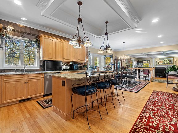 Welcome to an extraordinary approx 5,600 sq foot custom-built Colonial, privately sited on a beautifully manicured parcel that offers both elegance and seclusion. From the moment you arrive, the stunning craftsmanship and thoughtful design elements create an immediate sense of sophistication and comfort. This is a residence where timeless architectural character meets modern luxury-crafted for those who value quality, privacy, and lifestyle. Crown moldings, tray ceilings, rich millwork, and gorgeous interior decorative accents define the home's refined aesthetic. Sun-filled and generously scaled rooms create a warm, inviting atmosphere while offering exceptional flow for everyday living and grand-scale entertaining. The heart of the home is the gourmet kitchen-completely refreshed with brand-new appliances, granite countertops, and an expansive center island perfect for meal prep, dining, and gathering with guests. A sunny eat-in breakfast area opens to a large deck overlooking lush, mature trees. Enjoy outdoor dining and relaxation beneath the automatic shade canopy-your own serene retreat just steps from the kitchen. The main level also features a spacious family room anchored by a handsome gas fireplace, ideal for cozy evenings and festive celebrations alike. A formal dining room sits just off the kitchen, the perfect setting for holidays and gatherings. The adjacent space is a perfect home office w/a pocket door for privacy & French door to deck. This home's signature luxury feature-its private elevator-provides seamless access to all three levels. On the upper floor, you'll find three oversized bedrooms plus a flexible room suitable as a guest suite, studio, or second office. Two full bathrooms serve this level, and a conveniently located laundry ensures ease and efficiency. Looking to expand there is a walk-up attic, used for storage now but could easily be converted. Downstairs, the elevator delivers you to the expansive lower level, designed for recreation, relaxation, and year-round enjoyment. Here, you'll find a fully finished game room and media/bar room-perfect for hosting gatherings or enjoying movie nights and game days. A sun-splashed four-season porch completes the space, offering tranquil views of the grounds and a peaceful buffer between indoor luxury and the beauty of the outdoors. There is a half bath here as well for added convenience. Additional highlights include an attached two-car garage, a useful storage shed, and immaculate mechanical systems. The home has been meticulously maintained, with a new furnace, new A/C system and hot water heater providing peace of mind and energy-efficient comfort. Located just minutes from town conveniences, the commuter train and I-95, this property offers the ideal blend of private estate living and commuter accessibility. Whether you're seeking a sanctuary for everyday living or a sophisticated place to entertain, this exceptional Colonial delivers elegance, comfort, and enduring quality at every turn.
