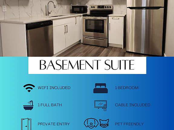 This basement suite is available from January 1st, 2025, and viewing can be scheduled from December 29th, 2024. If you would love to see the space, you can book an in-person or virtual viewing by scanning the QR code in the photos. The suite features a private entrance with a full kitchen (stainless steel appliances), soaker tub, in-suite washer and dryer, large bedroom closet, central heating and fresh air vent. It is in a quiet neighbourhood near lakes, parks, the TransAlta Tri-Leisure Centre and Yellowhead Highway. Rent is $950/month with an additional $250 for all utilities (electricity, heat, water, sewer and garbage disposal). Wifi and cable are also included. Have a pet? Perfect! A pet (cat or small dog) is accepted for a pet fee of only $50/ month. All utilities are included for an additional $250/month. The first month's rent and security deposit are due at signing. No smoking indoors, only outdoor smoking is permitted. Only one small pet is allowed for an additional $50/month.