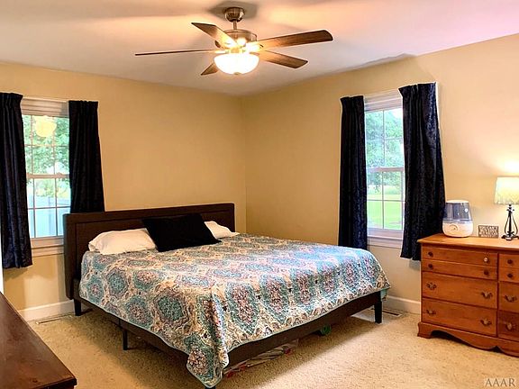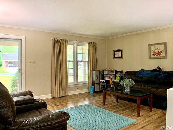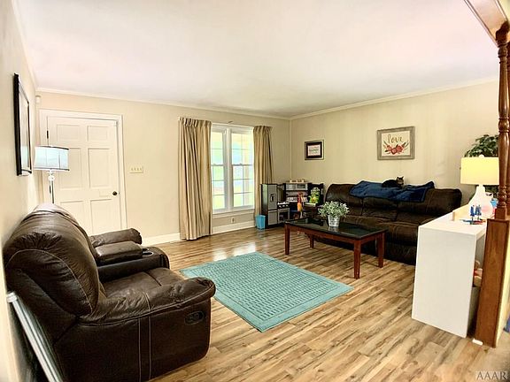 LOCATION! This beautiful brick ranch is calling you home to your new slice of country perfection. 6 ft. privacy fence encases the back yard with two separate gates. Access the detached garage from within the fenced-in backyard or from the driveway. Side loading attached garage with attic access via pull down stairs. Sizable front and back porches for relaxation. Updated LVT flooring throughout three bedrooms. New waterproof oak hardwood flooring in hallway, main living room and rear living room. Rear living area has an eye catching fireplace for chilly nights. Large open kitchen with plenty of counter space for cooking and entertaining. 30 minutes to Suffolk or Elizabeth City!