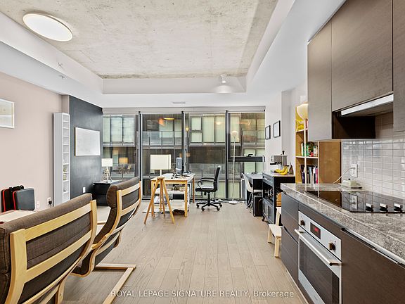 Welcome to Unit 406 at the Thompson Residences, ideally situated in the heart of Toronto's iconic King West neighbourhood. This boutique one-bedroom suite is the perfect opportunity for a first-time buyer or investor looking for style, space, and location. One of the largest one-bedroom layouts in the building, it offers 583 square feet of functional living space with floor-to-ceiling windows and custom coverings, a sleek Scavolini kitchen with Euro-style appliances, exposed 9-foot concrete ceilings, beautiful engineered hardwood flooring, and a spa-inspired bathroom with a rain shower. Ample in-suite storage and a dedicated locker provide practical convenience. The open-concept living and dining area is ideal for both everyday living and entertaining. Steps to top restaurants, shopping, parks, and transit, this suite is perfectly positioned to experience everything Toronto has to offer. Priced to sell, don't miss this opportunity!