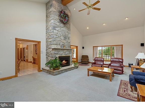 Custom built on cul-de-sac in Norwegian Woods. With style, amenities and size, this 5 bedroom 3.5 bath give you over 5,000 sq. feet of living space with a beautiful landscaped lawn and well maintained in-ground pool. Large eat-in kitchen with loads of counter and cabinet space. Counter tops are Corian. Large great room with 17' cathedral ceiling and natural stone floor to ceiling, gas fireplace. Large foyer with hardwood flooring. Radiant Heat on first floor. Security system. 3 full Baths with jacuzzi. Rear enclosed porch. 3-Car garage with bonus rooms above garage. Large shed. Central air, 7 zone oil heat. Several large walk-in closets. Tremendous amount of storage throughout. Large library/study with full wall of book shelves. Wrap around front covered porch.