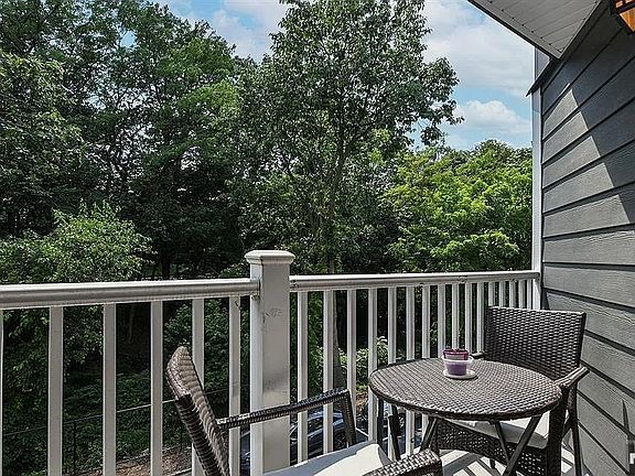Cozy wood-burning fireplacePrivate balconyTownhouse-style livingCentral airFlexible denGenerous walk-in closetMaple hardwood floors