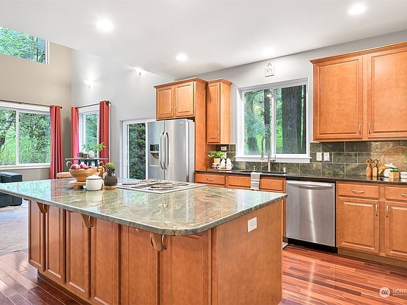 Northwest Craftsman style home situated on a dead end street. Experience all Sudden Valley has to offer with a flat lot adjacent to greenspace and direct access to Lookout Mountain Preserve Trailhead. Well cared for 4 bed, 3.5 Bath home that includes 2 primary suites. Each suite includes walk in closet & 5 piece bathroom ensuite with jetted tubs. Soaring vaulted ceiling in living room with a wall full of windows to let in all the natural light & views of the large evergreen trees that surround you. Open concept living with large kitchen + pantry, perfect for entertaining. Beautiful Granite countertops, stainless steel appliances, cherry hardwood floors & wood cabinets bring elegances & quality together. New Roof & Attic replaced in 2019.