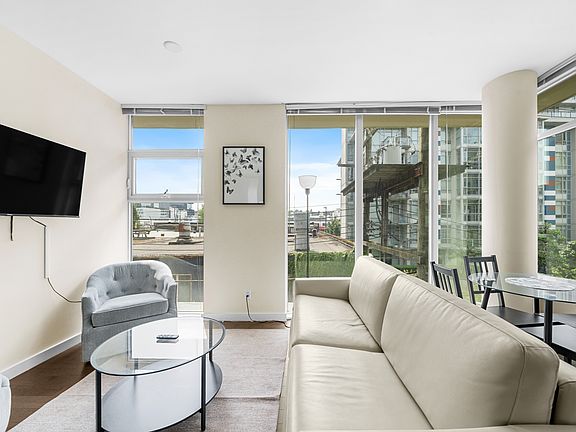 Move-in ready, this bright and modern 1-bedroom + flex home at The One in False Creek offers stylish living in an unbeatable location. The kitchen is equipped with high-end Bosch stainless steel appliances, including a gas range, and a custom pantry for extra storage. The flex space is ideal as a home office or extra storage room. Enjoy the comfort of in-suite laundry and built-in air conditioning. Living at The One means access to top-tier amenities, including a rooftop pool and hot tub, plus a fully equipped fitness centre. Parking is included. Pets are allowed at owners discretion. This is an excellent lifestyle choice.