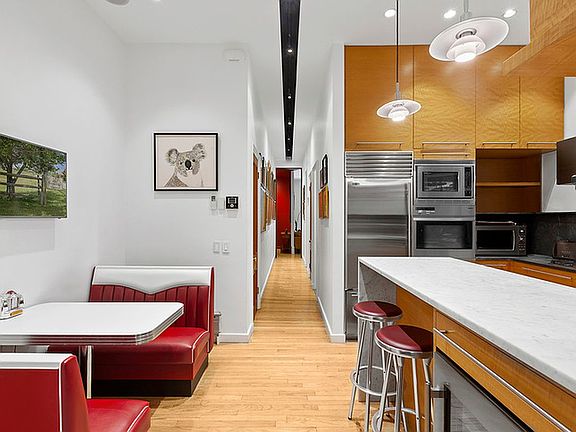 Other features of this home include a private maisonette entrance, original hardwood floors, central air conditioning throughout via split systems providing multiple zones and maximum efficiency. The space offers authentic charm and desirable details including multiple decorative fireplaces and exposed brick. The Portsmouth was constructed by Ralph Townsend in the 1800s. It is a rare, boutique pre-war coop on the coveted Gold Coast in the Village.
