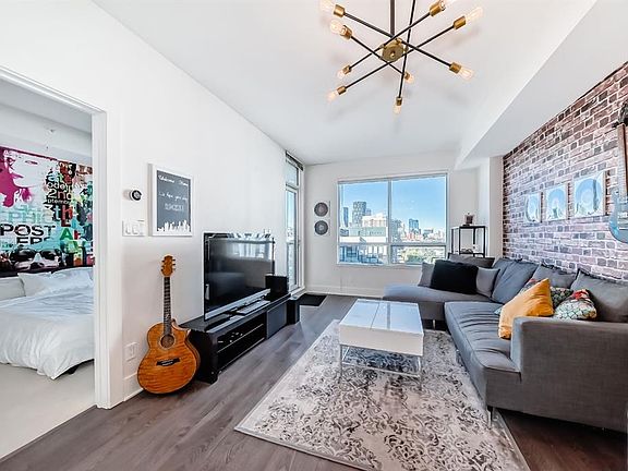 Welcome to this stylish west-facing 1-bedroom, 1-bathroom condo offering stunning downtown views, ideally located just steps from the C-Train. Whether you're a first-time homebuyer or an investor, this property presents an exceptional opportunity — currently operating as a successful short-term rental with a 30-day minimum stay. The condo comes fully furnished, with all modern and thoughtfully selected decor included in the sale, making it completely move-in or rental ready. Inside, you'll find a bright and open floor plan that seamlessly connects the living area to a sleek, modern kitchen featuring stainless steel appliances and contemporary cabinetry. Comfort is enhanced with central air cooling, and convenience is at your fingertips with an underground parking stall and a storage locker. The building offers a well-rounded lifestyle with exclusive access to a fully equipped gym, a beautifully designed party room, a comfortable guest suite for visitors, a dog wash station, and a community garden for those with a green thumb. This home effortlessly combines style, comfort, and location — just minutes from the heart of downtown. Don’t miss your chance to own this turnkey gem. Call today for your private showing!
