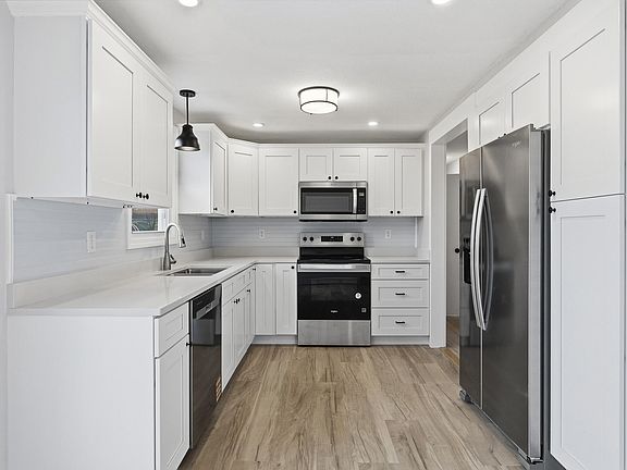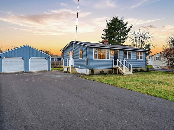 Another quality renovation from Harmony Homes, 38 Westfield Extension is a three bedroom, one bathroom ranch, with a detached two car garage and partially fenced in backyard. New kitchen with new electrical outlets, new installations, new dry wall, new counter and pantry cabinets, new quartz countertops, new sink, and new stainless steal appliances. New bathroom has new vanity, new tub, new tiles, new lights, new fixtures, new medicine cabinet. All new electrical including panel, outlets, switches, lighting. Bedrooms have new closet organizers. Flooring new throughout. Exterior has new vinyl siding, new shingles on the garage roof, new driveway asphalt, and metal roof (installed in 2024). New decking includes new front steps, new side steps, and new back deck. Showings start Sunday morning. Open House 1PM to 2:30PM on Sunday, November 23, 2025.