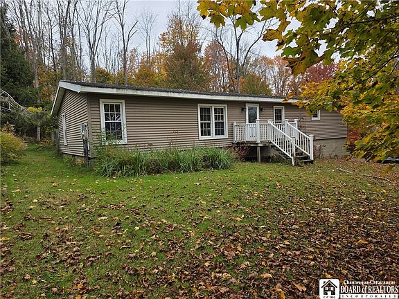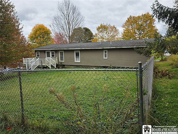 Enjoy everything that Mayville has to offer with this raised ranch on nearly an acre within close proximity to Chautauqua Lake, Rails to Trails, shopping, food, and amenities. This 3 bedroom and 2 bath modular home boasts not one but 2 living rooms, a very large Primary Suite with deep double closets, a large bathroom offering a newer soaker tub and shower. You will also find a large fenced in back yard offering ample space for your pets to run but be close by, a home that sits nestled off the road with minimal traffic, and a full basement that provides storage, workshop space, parking, your laundry facilities, and more!