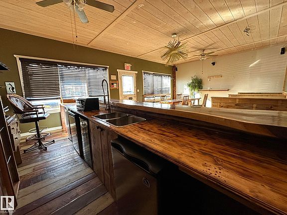 Here is your chance to live your dream.. Perfect property for a small business such as a cafe, resto, bring your ideas. And live right behind your workplace in a nicely appointed 2 + 1 bedroom smack in the middle of downtown Smoky Lake. The front of the property boats a wide-open concept with bar and lots of seating, you'll love how cozy and warm the room is, a cute bathroom is there for your potential customers. The owner's quarters offers a functional kitchen, a large living room with patio door to the rear covered porch, backyard and single garage. 2 good size bedrooms and full bath complete this floor. Downstair you'll find another bedroom, tons of storage space, laundry and utilities. Best location in town, busiest street, located between well-established businesses. You won't find a better opportunity.
