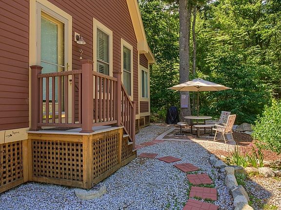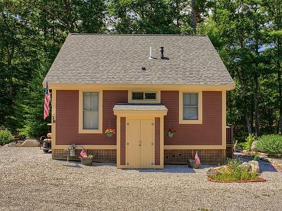 Start making summer memories with your own cottage at Summer Village! This Dogwood model was built with several upgrades and is nicely sited "off the beaten path" near the end of the road, affording a bit more privacy, wooded views and a peaceful retreat at the end of a fun day. This unit features an open floor plan with high-end furnishings and custom Hunter Douglas window treatments and a fully-applianced kitchen with ceramic tile flooring. Hardwood flooring in the living area & bedrooms. Panasonic AC/heat wall unit with individual thermostats in the open living area and in each bedroom. Ample storage space in the custom bedroom closets, attic space with flooring & exterior shed. Enjoy the beautiful beach, two heated pools, putting green, tennis, basketball, bocce, private restaurant & bar, the pavillion & general store. GOLF CART, GRILL, PICNIC TABLE, WASHER & DRYER & MOST FURNISHINGS INCLUDED WITH SALE (ask to see complete list of inclusions).