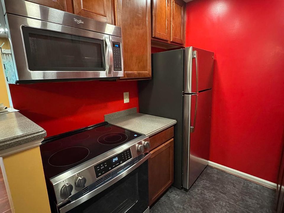 Discover an exquisite penthouse unit that embodies luxury living in a serene garden setting. This stunning 3-bedroom, 2-bathroom apartment features elegant wood floors and adjustable recessed lighting, creating a warm and inviting atmosphere throughout. The traditional floor plan seamlessly connects the galley kitchen, equipped with high-end appliances including a built-in microwave, dishwasher, and electric oven, to the spacious dining area, perfect for family dinners. Enjoy the tranquility of nature with picturesque views of lush trees and woods, providing a peaceful backdrop to your daily life. The community offers an array of exclusive amenities, including a sparkling outdoor pool, a well-equipped fitness center, and a welcoming clubhouse, ensuring a lifestyle of leisure and comfort. With two reserved parking spaces and included maintenance for common areas and grounds, convenience is at your fingertips. The unit is available for lease starting September 1, 2025, with flexible terms ranging from 12 to 36 months, allowing you to settle into your new home with ease. Embrace the luxury of community living while enjoying the privacy and comfort of your own space. This property is not just a home; it's a lifestyle waiting to be embraced. Don't miss the opportunity to make this exquisite residence your own. Great location! Close to shopping and commuter options