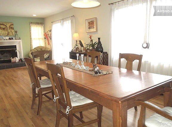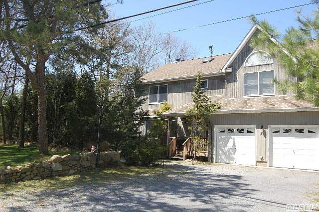This spacious, open plan, light-filled traditional home was built in 2000. It is located on a quiet residential street in the Northwest Woods of East Hampton, about 3+/- miles to both East Hampton Village and Sag Harbor Village. It offers four bedrooms, two and one half bathrooms, a living room with a wood burning fireplace, a den, a dining area adjacent to the open kitchen, and a two-car attached garage. The master bedroom has a walk-in closet, private bathroom, and cathedral ceilings. Two of the additional three bedrooms also have walk-in closets. The full basement has high ceilings, abundant natural light, and double glass doors opening onto a wide exterior staircase to the rear yard. The heating system has been recently updated with a new natural gas boiler and furnace. The central air conditioning system has a large capacity, high efficiency, top-of-the-line compressor. Additional features include hardwood floors, many large closets, public natural gas for efficient heating, upstairs laundry, skylight, side entrance into mudroom, front porch, and rear deck. The rear and front yards are fully enclosed with lush grass, established landscaping, and an automatic sprinkler system. Room for pool.