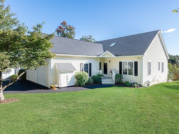 This welcoming unit at Southborough Meadows is located in the most desirable area of the community! A gentle winding drive to the top of the hill offers tree top views and privacy! Gracious one floor living offers hardwood flooring in the entry and kitchen plus new carpeting throughout the home. The open kitchen has room for table & chairs, lots of countertop space, and easy out to the garage. The open plan living and dining area includes vaulted ceilings and a recently replaced sky light which provides natural light. Your favorite spot just may be the bright sun room with three sides of glass, views across the treetops, and a door to the large deck. The primary bedroom offers both a large ensuite bath and laundry plus a walk in closet. The second bedroom could also be a den or office. Guests have a half bath. The lower level has sliders to the exterior and offers potential workshop, crafts, exercise areas. Clubhouse available for parties. This unit is immaculate and move in ready.