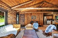 Fire pitBright skylightsConnected deckMassive primary suiteEnsuite with soaking tubStone fireplaceRefinished wood floors