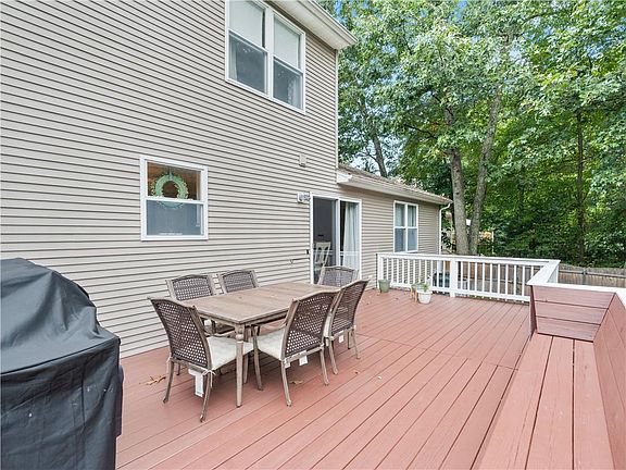 Immaculate 3 Bed 3.5 Bath colonial set on a half acre of land in highly sought after Fairview Commons. 38 Woodmist Circle features almost 3000 square feet of move-in ready living space. This home offers a welcoming farmers porch, 2 car garage, gleaming hardwood floors, crown molding, and smart home technology. Step inside to your sun drenched formal living room complete with a shiplap accented focal wall. Beautiful barn doors lead to your large formal dining room that features a custom built-in bay window and exquisite paneling which make it the perfect spot for holiday entertaining. Fully upgraded eat in kitchen features stainless appliances, granite countertops, and custom tile backsplash. On crisp fall nights cozy up by the gas fireplace in your spacious family room with decorative accent wall. Head upstairs to your primary bedroom with large walk in closet and private full bath. An additional 2 bedrooms with ample closet space and full bathroom round out the second level. The finished lower level offers a large 12x28 family room, full bath, closet, and plenty of room for storage. Head outside to your well manicured-fully fenced backyard complete with a 10x24 deck, irrigation system, raised flower/planter boxes and storage shed. Schedule your private showing today!