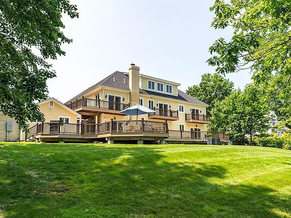 7,600+ sq ft residence, a haven of elegance and tranquility, boasting an impressive 215' of pristine water frontage. As you step into the grand foyer, you'll immediately be captivated by the sheer beauty and opulence that define this property. The main floor offers a seamless flow, featuring an expansive family room adorned with a charming fireplace, formal dining room and well appointed office. Large windows throughout allow for an abundance of light and views. You will be inspired by the amazing kitchen equipped with a large center island, state of the art appliances and butler's pantry - every chef's dream kitchen! This home offers two primary suites, one on each floor - to cater to your utmost comfort and privacy. Wake up each morning to the soothing sounds of the lake and views from your private balcony or terrace. 2 additional en-suite bedrooms, each a private balcony, ensure everyone enjoys a retreat-like experience as well as a second floor loft. A finished third floor offers e