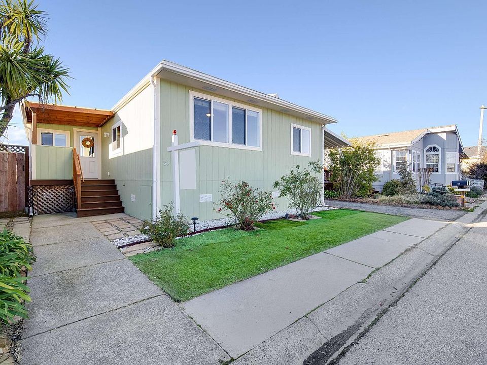 Turn-key home located in sought-after Contempo Marin, an all ages mobile home park with excellent amenities such as pool, spa, clubhouse with library, playground area, and tennis courts. The community has a beautiful lagoon with fountains and is surrounded by pathways with views of the nearby hills where homeowners can enjoy daily walks. This cozy home features an open concept kitchen, dining and living room plus a convenient office nook, a Primary bedroom with an en-suite bathroom, 3 additional bedrooms and a hall bathroom. Additionally, the home offers a washer & dryer closet, two covered decks, a 3-car tandem carport and a fenced backyard with brick patio, turf, storage shed and great views of the Marin wetlands. The property has been updated by the owners over the last 5 years, including the addition of new exterior siding, laminate flooring, kitchen cabinets and countertops, renovated bathrooms, newer wall paint, new water heater and HVAC unit and more. This mobile home is under a rent control space and is not on the tax roll, requiring a low annual license fee. Don't let this one pass by you. Why? It's a cute, comfortably-sized home in great condition located in San Rafael's top-rated Miller School District. Space rent is $1,038/month.
