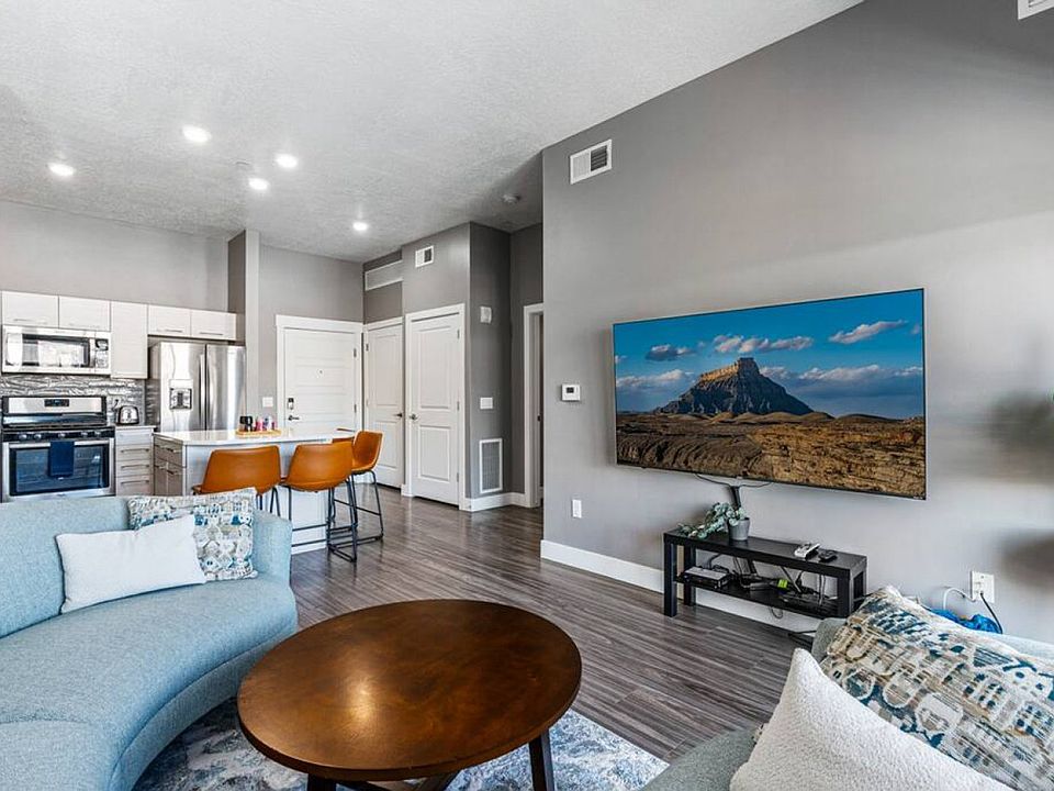 Experience luxury and convenience in this beautifully furnished penthouse apartment in the heart of Salt Lake City's Central City neighborhood. Relax on the comfortable couch or stretch out in the spacious king-size bed while taking in the stunning views of the Capital building and the mountains. Conveniently located with a 90 Walk Score, you'll be just minutes away from shopping, dining, hospitals, the library, downtown, and the University of Utah. For those who love the outdoors, world-renowned ski areas are only a 30-40 minute drive away. Take advantage of the impressive amenities, including a heated year-round pool and spa, a 24-hour fitness center, and secure covered parking. With elevator access, there are no stairs to worry about. Unwind and socialize in the luxurious common areas, which even include pool tables. This apartment features custom designs with high-end furnishings, original local art, a fully stocked kitchen, and everything you need to call this place your home away from home. The spacious light-filled living room boasts a large luxury couch with amazing views of the Capital building. The kitchen is fully stocked with stainless steel appliances, a breakfast bar, and a coffee station with organic coffee, tea, creamer, and sugar provided. The tastefully designed bedroom includes a walk-in wardrobe and an en-suite bathroom, while the beautiful bathroom offers luxury toiletries. Enjoy the balcony with outdoor seating offering amazing views of downtown, the Capital building, and the mountains. A full HE washer and dryer with laundry pods are also included. The apartment includes one secure assigned parking spot in a garage under the complex with a maximum height of 8'2". Traveling with little ones? A complimentary Pack 'n Play and high chair are available upon request. Early check-in is guaranteed by 1 pm, and late check-out is at 12:30 pm for a $30 fee. Housekeeping is available during your stay with options for daily, weekly, bi-monthly, and monthly cleanings depending on your needs. Additional concierge services are available, including shopping, errands, package sending, and dry-cleaning drop-off. Located in the Central City neighborhood, this apartment is close to downtown but just far enough to be quiet. The building is next to the TRAX Red-Line, a four-minute walk to the station, providing easy access to the University of Utah, the stadium, and the airport. It's 15 minutes from SLC International Airport, 6 minutes to the Salt Palace Convention Center, Temple Square, and City Creek Mall, and less than 40 minutes to all the ski resorts in SLC and Park City. This location requires you to be a minimum age of 25 years. Quiet hours are from 10 pm to 8 am. No smoking or vaping is allowed anywhere in the apartment or on complex property, with a minimum fine of $500 per occurrence. No pets are allowed unless explicitly agreed upon, with a minimum $200 fine. Check-in time is 4 pm and check-out time is 10 am. Guests that do not check-out on time may be charged $50 in hourly increments. You can apply for early check-in or late check-out for a $30 fee. You are welcome to entertain up to 2 guests, but no parties are allowed, with a minimum fine of $1000 for unapproved parties. All overnight guests must be included in the booking, with a $100 fine per person for any unregistered guests staying overnight. Resident amenities such as the pool, gym, and common areas may be unavailable due to maintenance or other reasons at the discretion of apartment management. The apartment management may enter the property for urgent maintenance or safety issues, but will seek permission from the guest before entering when possible. Do not contact the apartment complex management for any reason; they will only work with our trusted partner. The apartment is equipped with high-speed Wi-Fi and a 65" flat-screen Roku TV in the living room with cable TV, making it ideal for remote work. A laptop computer is not included.