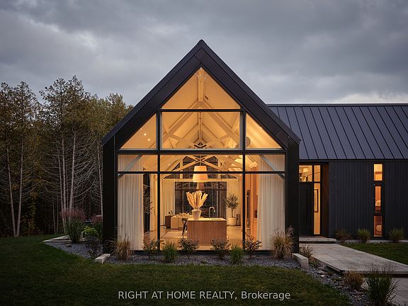 Modern Riverside Masterpiece on the Salmon River. Experience contemporary luxury at its finest with this newly built, single-level home nestled along the tranquil Salmon River. Thoughtfully designed and meticulously crafted, this residence blends architectural precision with natural serenity creating a living experience thats as sophisticated as it is soothing. Step inside to discover soaring ceilings, exposed white beams, and polished heated concrete floors that radiate warmth and modern elegance. Every detail from the Douglas fir timber frame construction to the custom lighting that shifts the mood throughout the day has been curated for both comfort and character. The open-concept kitchen anchors the home, designed for effortless entertaining with its eat-in layout, hidden bar, and seamless connection to the main living space. Floor-to-ceiling windows capture sweeping river views while flooding the interior with natural light. The primary suite is a true retreat, featuring a spa-inspired ensuite overlooking the water, a STUV fireplace, and custom drapery for added privacy. Three additional bedrooms and two full bathrooms continue the homes standard of craftsmanship and refined design. Built to the highest standards, this home features: Metal-insulated wall system with ICF foundation, Three integrated heating systems (outdoor wood boiler, propane boiler, HVAC), Dual A/C units, HRV, and water-softening system, Roughed-in options for pool and generator, Efficient high quality well and septic system, Two fireplaces including an open-flame design in the living room for added warmth and ambiance. Every element was considered from sound insulation to temperature control ensuring the home remains as energy-efficient as it is striking. Surrounded by nature yet close to everyday amenities, this property offers a rare combination of artistry, engineering, and contemporary luxury. A riverside sanctuary unlike any other.