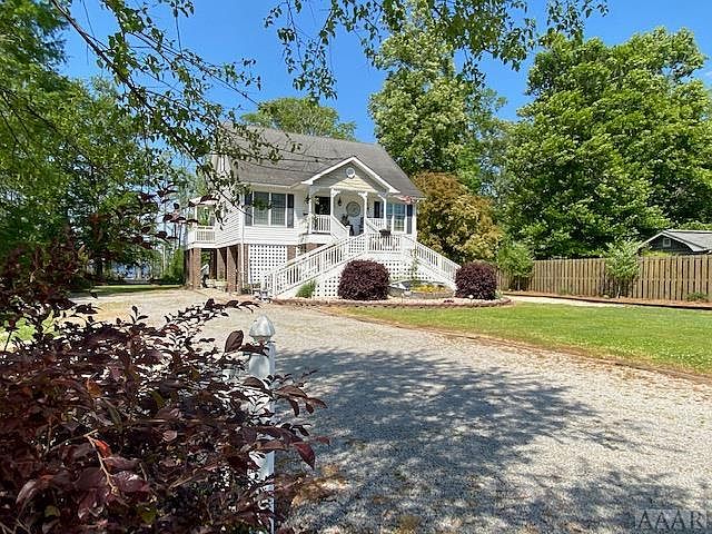 This soundfront beauty features a sandy beach, mature trees, protected waterfront & maritime forest. A fabulous covered patio for the perfect place to entertain outdoors. 3 bedrooms, 2 baths, a bonus room/office, great kitchen, adjoining dining area & living room w vaulted ceilings & fireplace. Enjoy a cozy sunporch that steps onto a large elevated deck. With a sandy beach, pier and 214 feet of waterfront, this property offers plenty of room to enjoy sunbathing, gardening, fishing or a boat ride to Mackeys or Edenton. The detached garage is huge & has HVAC. Neighborhood has a boat ramp.