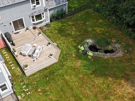 Welcome to 380 Burroughs Rd., a stunning Colonial home on a landscaped level acre. The floorplan was thoughtfully designed to be enjoyed inside and out, from delicious meals prepared in the custom chef’s kitchen and served in front of the fireplaces to barbecues on the expansive deck and lawn games by the koi pond’s waterfall. There’s also plenty of room for all, with a family room, formal living and dining rooms plus a private home office. The primary suite is easily the nicest one in town, composed of four rooms including a fireplaced bedroom with cathedral ceiling, spa bath with radiant heat, dressing room (or nursery/workout space!) and a walk-in closet with built-in shelving and island. Three more bedrooms, one is en-suite, third full bath and laundry complete the second floor. The lower level includes a studio with exterior access, kitchenette, full bath and loads of storage. With too many features to list here, check out the photos and then come visit, you won't want to leave!