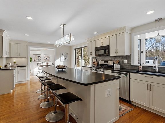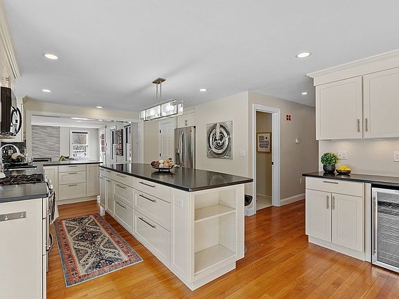 - Features: Flooring - Hardwood, Window(s) - Bay/Bow/Box, Pantry, Countertops - Stone/Granite/Solid, Kitchen Island, Recessed Lighting, Remodeled, Slider, Stainless Steel Appliances, Wine Chiller, Gas Stove, Peninsula