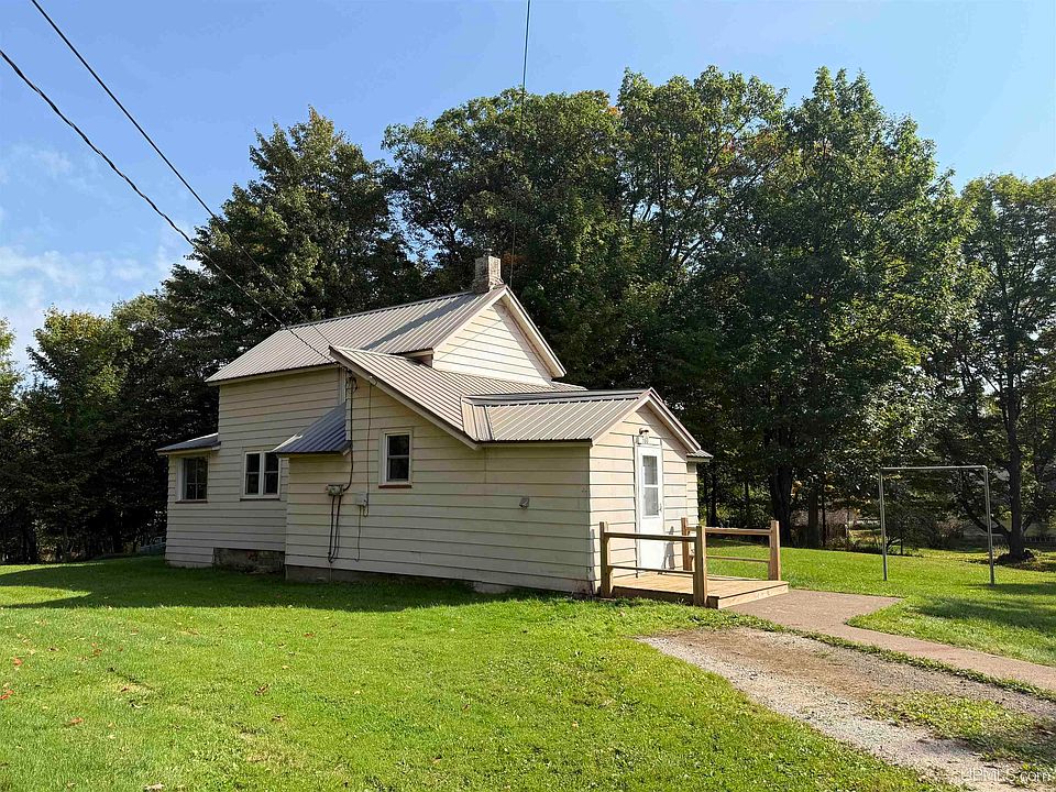 We are all looking for the great home that has a fantastic price point but isn't a complete overhaul right? This just may be the ticket for you, a quaint and charming 3 bedroom and 1 bath home that is situated perfectly on a tad over 3/4 of an acre! This home has been cleaned top to bottom and is ready for a new owner! First time home buyer with vision? Maybe just looking for a quiet neighborhood with a big yard? You need to look at this one! This home home has a nice entrance with main floor laundry that leads right into your kitchen. This kitchen offers plenty of cabinets and counter space, updated GFCI electrical and outlets and bright and sunny and all the appliances stay! Walk into the living and dining area with newer and freshly cleaned carpets, plenty of space for what you need! From there is the main floor bedroom and full main floor bathroom. Off the back of the home is a nice 3 season room with a large picture window overlooking your expansive yard where the deer roam picking up apples from YOUR trees! Upstairs is where you'll find 2 more bedrooms, one with carpet simply laid over the original hardwood flooring and both with newer vinyl windows. You will love the outside space! There's plenty of yard space with nice tree coverage, an outdoor shed or chicken coop and lots of apple trees in your private backyard. This home is neat and clean and at just a tad over 1000 square feet, will give you plenty of space and the not overwhelming to update the way you'd like. Plus the newer metal roof, updated electrical, furnace just professionally cleaned and the seller just having the septic pumped will save you $$ so you can paint it in your own colors and be able to call it HOME! Call your agent and see this one that won't break the bank and give you a nice, solid home to live in! **PLEASE NOTE, this home's primary heat source is fuel oil, BUT SELLER CONFIRMED THAT NATURAL GAS IS AVAILABLE AT THE STREET, NEXT DOOR NEIGHBOR AND OTHERS ON THE STREET HAVE NATURAL GAS.***