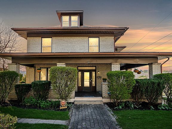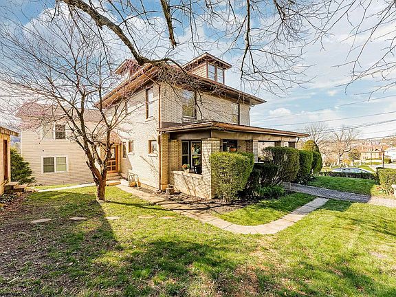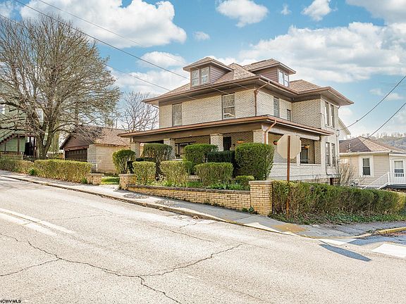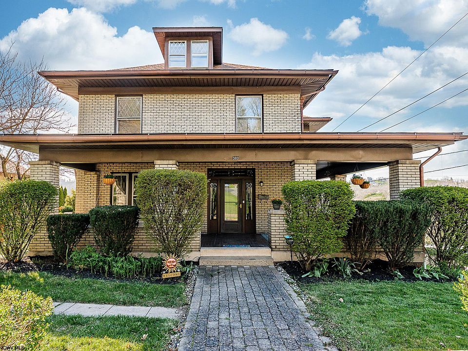 Beautifully maintained American four-square brick home with large wrap around covered porch is perfect to enjoy the sights and sounds of downtown Morgantown. This house sits near the end of S. High Street, making it close distance to amenities such as the Waterfront amphitheater for live music, bars, restaurants and breweries, the Rail Trail, Decker’s Creek Trail, and WVU’s downtown campus. Also close to Jack Robert’s or White Park offering sleigh riding, basketball courts, softball fields, ice skating rink, playground, bicycle and trails. Morgantown High School is also close through historic South Park. The large open concept living room boasts hardwood floors, original built-ins, and fireplace. The eat-in kitchen has been updated with large cabinets that allow for a great amount of storage. Original exposed brick has been refinished to add character to the modern kitchen. The large dining room has original built-ins with beautiful stained-glass cabinets. With entrances to the porch from the dining room and living room, the first floor is perfect for entertaining. Upon entering the second floor you find a large primary bedroom with large closet and updated ensuite bathroom with large soaking tub, dual sink vanity, and custom shower. Additionally, there are two more bedrooms and an upgraded bathroom with modern fixtures and dual sink vanity. Ascend to the third floor that can serve as a fourth bedroom or bonus area. The basement includes a third full bathroom, washer/dryer, additional refrigerator and standing freezer. Lots of storage space in basement, including a small room used historically as a dark room for developing pictures. Detached garage and additional off-street parking. This house is zoned residential or commercial, offering endless potential. Combining modern updates with timeless charm, this home is ideal for buyers seeking comfort, convenience, and style.