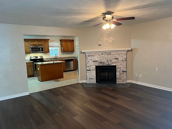 Full privacy fenceGranite countertopsQuiet cul-de-sacFire pitEdison lightsCustom cabinetsNew lvp floors