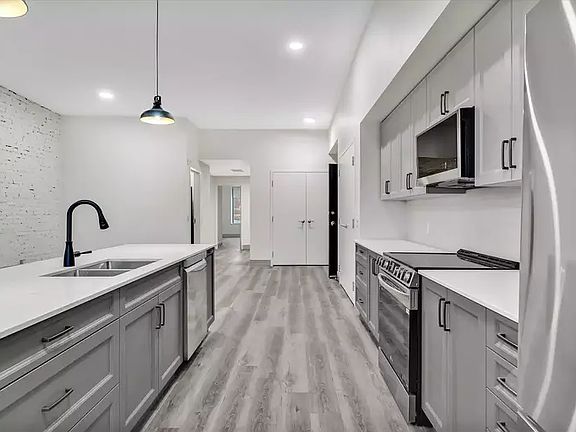Completely renovated, state-of-the-art rental unit located in the heart of downtown Peterborough. This spacious 1494 sq ft unit offers two bedrooms and one bathroom, featuring a modern kitchen with LG stainless steel appliances and a breakfast bar. The open-concept living area includes dimmable lighting and large windows with coverings, providing privacy and ample natural light. Additional highlights include a luxurious 4-piece bathroom, in-suite laundry, and custom closet organizers.