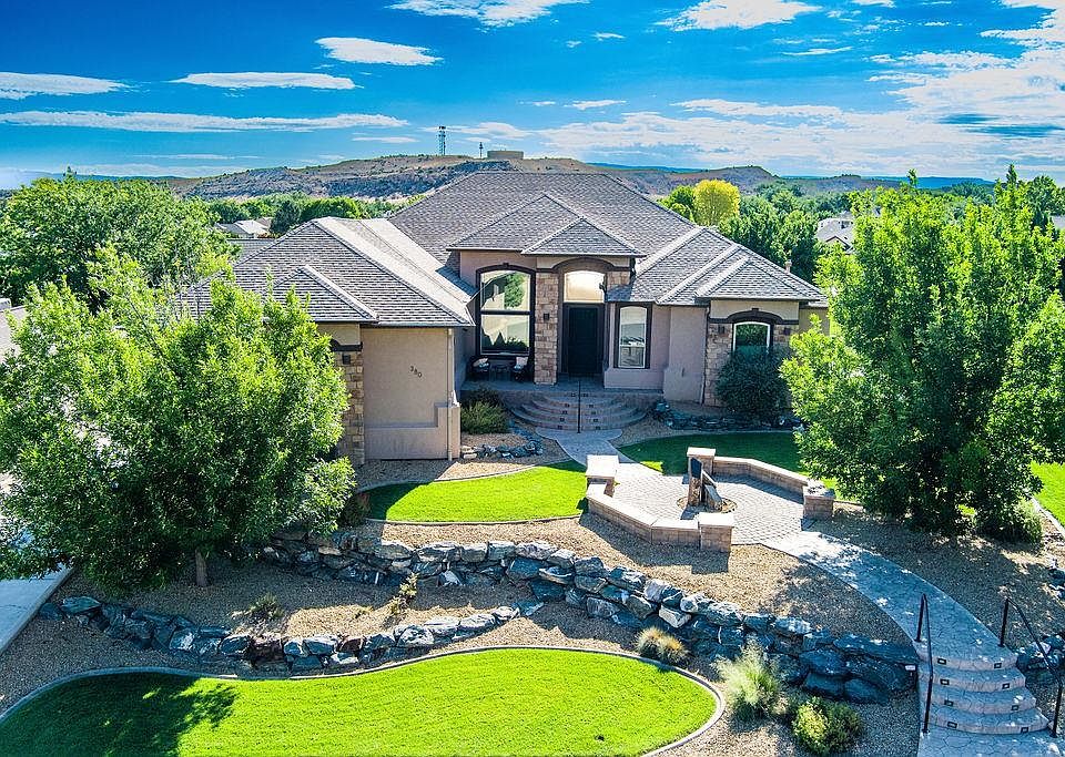 Nestled near the base of the breathtaking Colorado National Monument, this stunning Redlands home offers exceptional space and comfort for everyone. The main level features an open-concept kitchen and living area, a welcoming dining space, a dedicated office, a luxurious primary suite, and two additional bedrooms connected by a Jack-and-Jill bathroom. The fully finished lower level is an entertainer’s dream, featuring a spacious family room, a game room with a kitchenette and pool table, a beautifully designed theater room, additional bedrooms, and a fun playroom for the kids. A brand new roof was just installed offering peace of mind for years to come. A MASSIVE 3-car garage with a bonus room provides ample storage and flexibility for hobbies or extra living space. Situated on a generous 1/3-acre lot, the home also features a large covered patio with an outdoor kitchen—perfect for entertaining. The yard is just steps away from a neighborhood green space, and you're only few minutes from some of the valley’s best hiking and biking trails. This one has it all! Don't miss your chance to call it home!