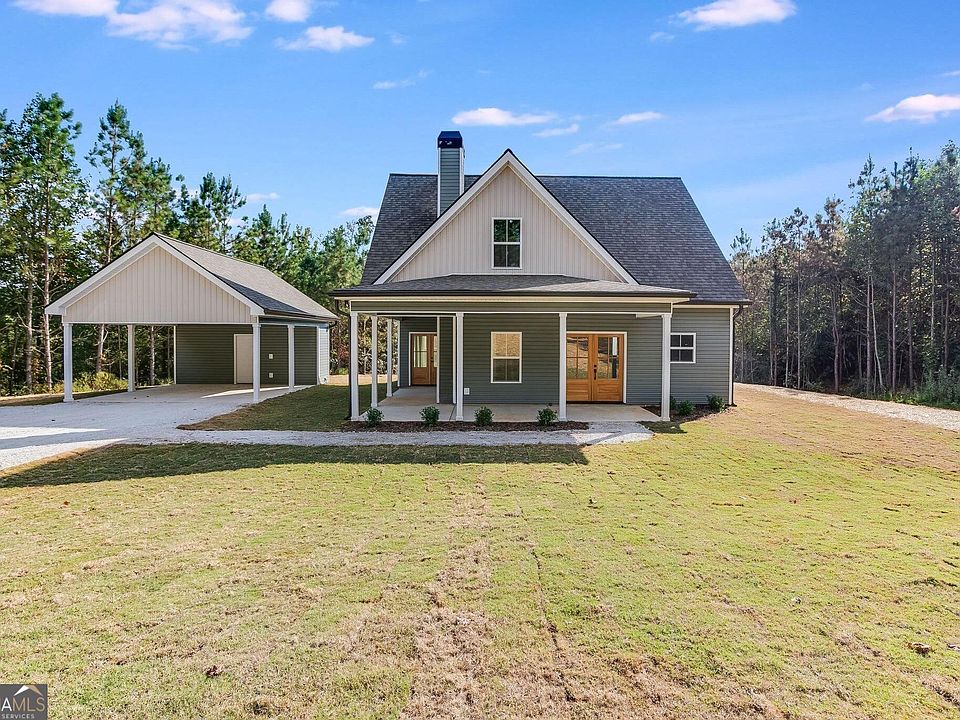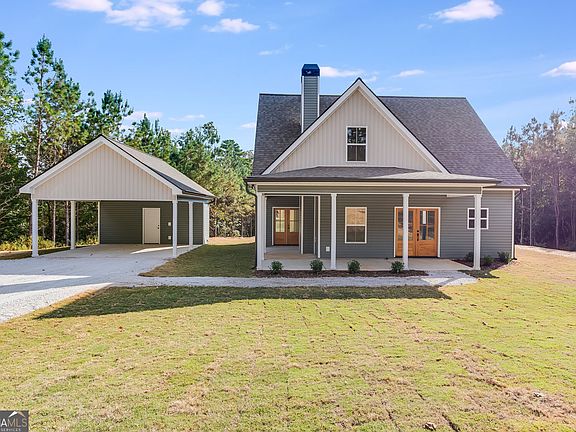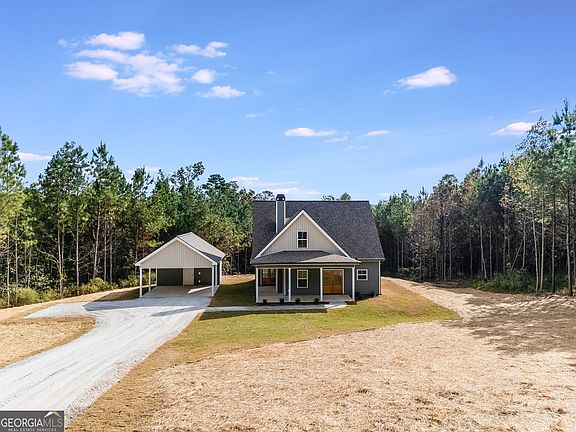 Situated on 4 private wooded acres, this home is ready for its new owners! This home is approximately 16 miles from the Carrollton square and 8.5 miles from the Bowdon square. The home features an open concept layout with the primary bedroom located on the main floor. Three bedrooms are upstairs. The primary bedroom features beautiful tile in the shower and floor areas as well as quartz counters. Adjacent to the primary bathroom is a large walk-in closet. The upstairs bathroom is tiled with a double vanity and quartz counters. The kitchen features beautiful cabinets with soft close doors and quartz counters. Outside you'll find that the carport has an attached storage area. The 4 acre lot offers plenty of space for animals or any additional sheds!