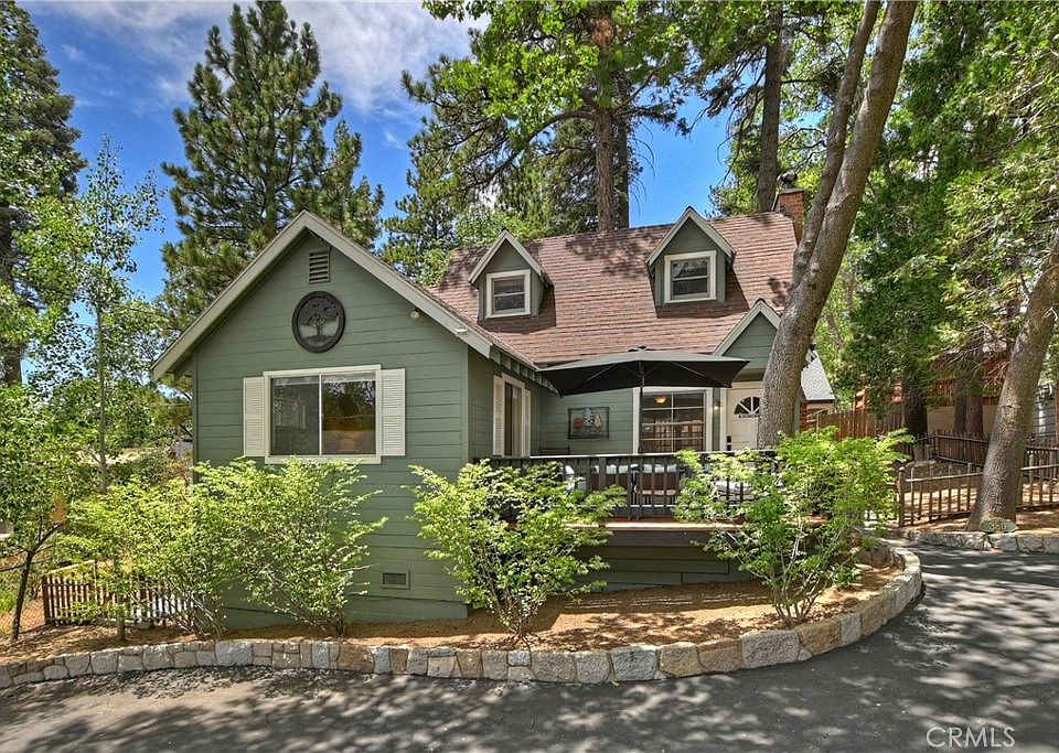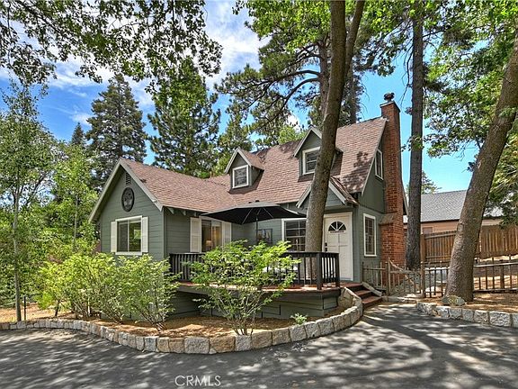 Don't wait, this is priced to sell. Enchanting Palisades area cottage! Nearly level entry into this well-maintained charmer. Main level features bedroom and full bath, cozy living room with wood floor, wainscoting and fireplace and slider to rear deck, a good-sized kitchen that opens to living and dining room as well as a separate laundry room. Upstairs you will find two additional bedrooms with good storage. Lots of room to entertain on front and rear deck plus large, fenced yard for year-round enjoyment. Plenty of parking on the split faced granite lined driveway. Short walk to the lake or nearby stores and restaurants. And of course, this property does come with "Lake Rights" to private Lake Arrowhead. Now is your opportunity to buy in one of the most sought-after neighborhoods in Lake Arrowhead.