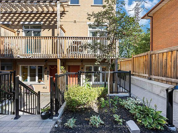 Welcome to Unit 120 at Baker Street Residences. A rare end-unit stacked townhouse that feels bright, open, and elevated. Perfect for first-time buyers or savvy investors, this 2-storey, 2-bedroom, 2-bath home offers over 1,000 sq. ft. of stylish living space just steps from the brand-new Eglinton LRT. Enjoy the perks of ground-level living without the basement feel thanks to this high-elevation end unit with extra windows and natural light throughout. The open-concept main floor features 9 ceilings, pot lights, and a modern kitchen with stone counters, tile backsplash, and an eat-in area. Upstairs, you'll find two generous bedrooms with large closets, plus a private balcony the perfect spot for morning coffee or evening unwinds. Your owned parking is right beside the pedestrian access, which is also across from your unit. The extra large locker provides ample additional storage. Recently painted, with new back splash and kitchen storage nook, this move-in ready home is ideal for anyone looking for comfort, location, and long-term value. The location has one of the best school catchments also! West Preparatory Junior Public School (JK - 6).