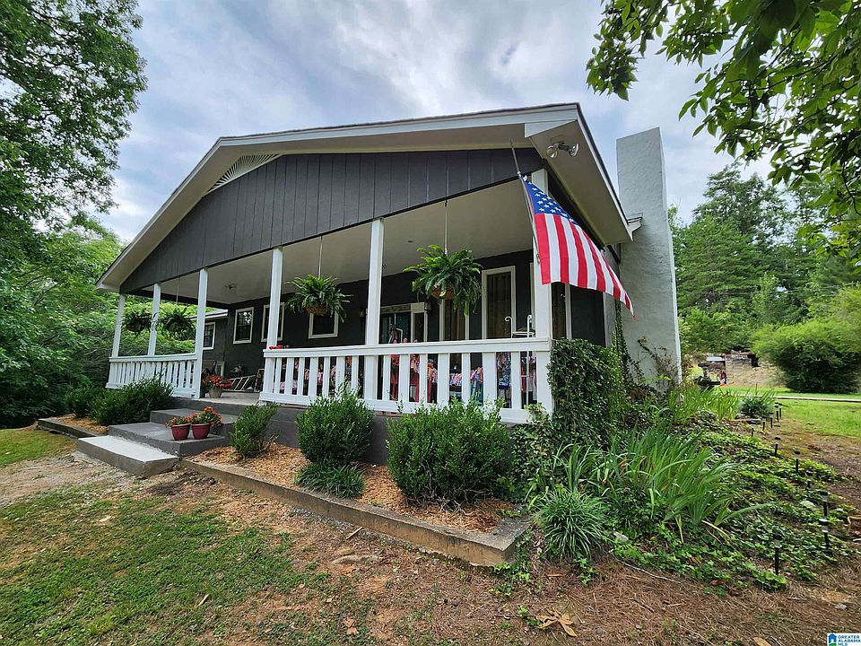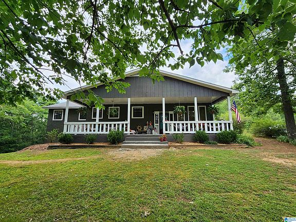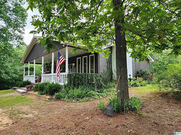 This charming one-owner, custom-built home is tucked away on a very pretty and lush 4 acre lot in Odenville. You’ll love the privacy, and the seller’s “green thumb” will be apparent as you pull up the driveway. The roof was replaced approximately 10 years ago, and the block construction and stucco exterior is surprisingly energy efficient, providing low utility costs. In addition, there is an underground storm shelter just steps away from the back patio. Enjoy a glass of lemonade with family on the southern-style covered front porch or the open back patio. Inside, the wood-burning fireplace features a rock chimney and is the perfect touch for the comfortable and large sunken living room. The kitchen boasts freshly painted cabinets, new countertops, and is open to the dining area. You’ll find new flooring throughout as well. Also notable: detached garage-barn, some areas are fenced for livestock, and no HOA or subdivision.