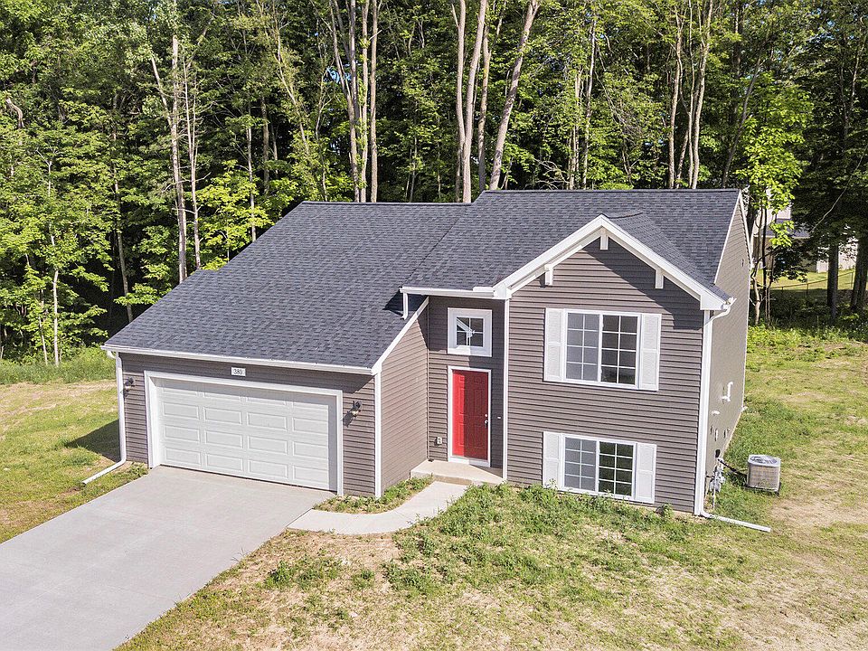 Welcome to a brand new 3 bedroom home at the end of a cul de sac backed into woods. The main floor has a kitchen, eating area, living room, pantry and owners suite with 2 closets with a full bath as well. The lower level has 2 bedrooms, family room, laundry and storage. Other perks: close to 131, shopping, schools, and much more. Call for a private showing today!
